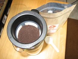 80gを「ハリオの水出しポット」(1200CC用)の白いメッシュ(ストレナー)の中に入れる。