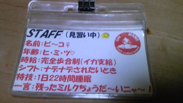 手作りのスタッフカードを首にぶら下げて店員ということにしたら大人気に。
