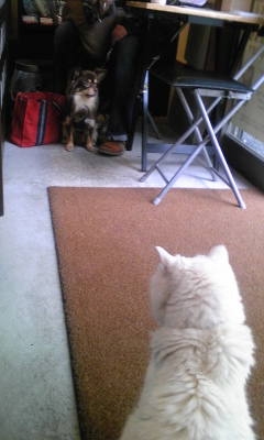 初めてのワンちゃんとの遭遇に固まるピーコ