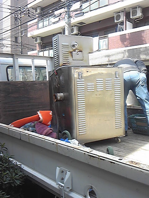 連れて行かれる旧焙煎機。 ドナドナド~ナ(涙)
